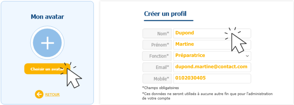 Choisissez un avatar pour personnaliser votre compte et renseignez vos informations personnelles.